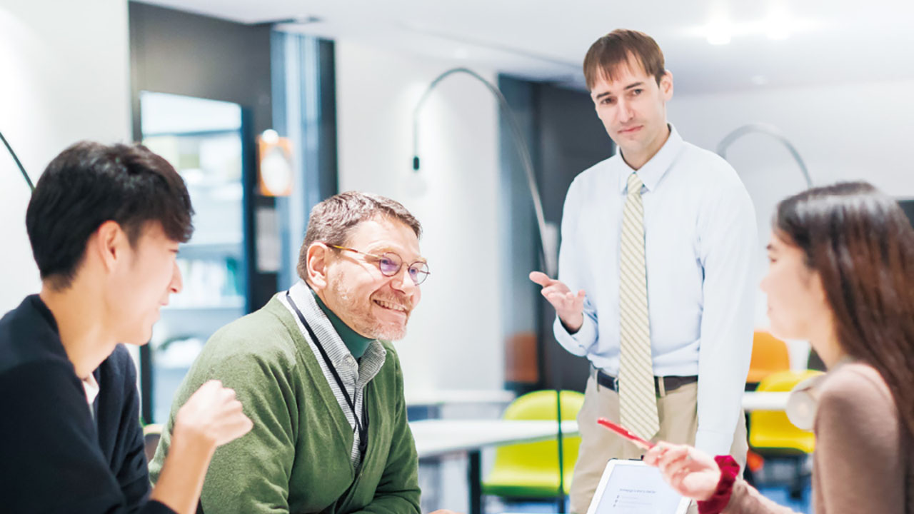 「英語相談室」では、主に初級英会話やTOEIC受験を目的として、日本語も話すことができる外国人講師とともに様々な語句や会話表現を学ぶ少人数制のレッスンを実施しています。「プライベートレッスン」では、英語・中国語・韓国語が得意な在学生や留学生がStudent Assistantとして、それぞれの言語の学習をサポートします。身近な先輩とともに、楽しく語学学習を進めることができます。