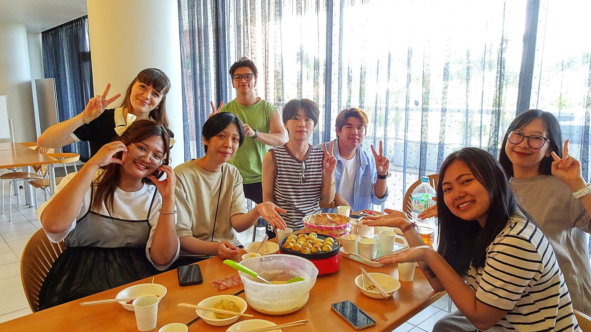 様々な国からの留学生とキャンパス内で交流することで日本に居ながら国際感覚を身につけます。学内で国際交流を楽しみましょう!