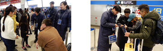 3月になり、暖かい日が続いていましたが、活動日は、真冬に戻ったぐらい寒い中での活動となりましたが、元気よく旅行者へおもてなし活動をしました。
