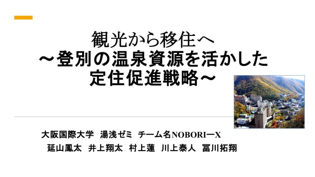2025年9月1日(月)~3日(日)の3日間、北海道登別市において、大阪国際大学 経営経済学部 経済学科 小竹森ゼミ・湯浅ゼミ、立教大学、同志社大学、金城学院大学、城西大学、日本工学院北海道専門学校の学生12チーム64人が集い、「『消滅可能性自治体』登別、あなたならどうしますか?」というテーマで、チーム対抗の政策提言をおこないました。