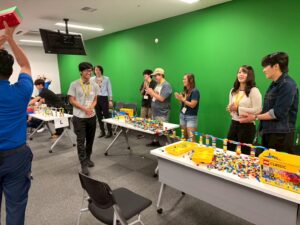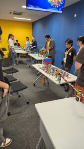 当日は、レゴブロックを使った大学生向けの特別版ワークショップを体験。各チームに別れて時間内に与えられたお題に基づいて、真剣に取り組み作品を完成させることができました。