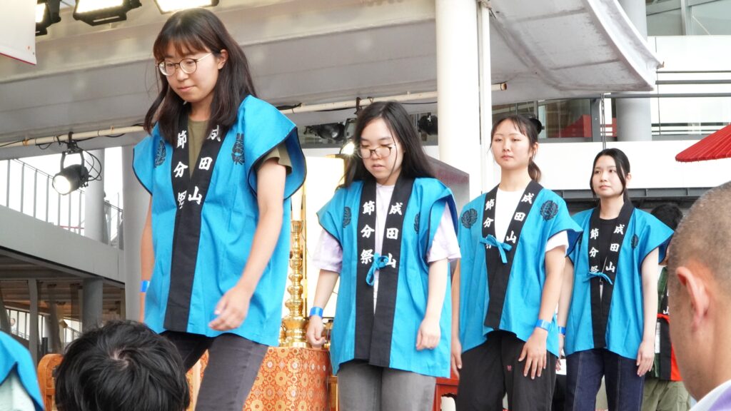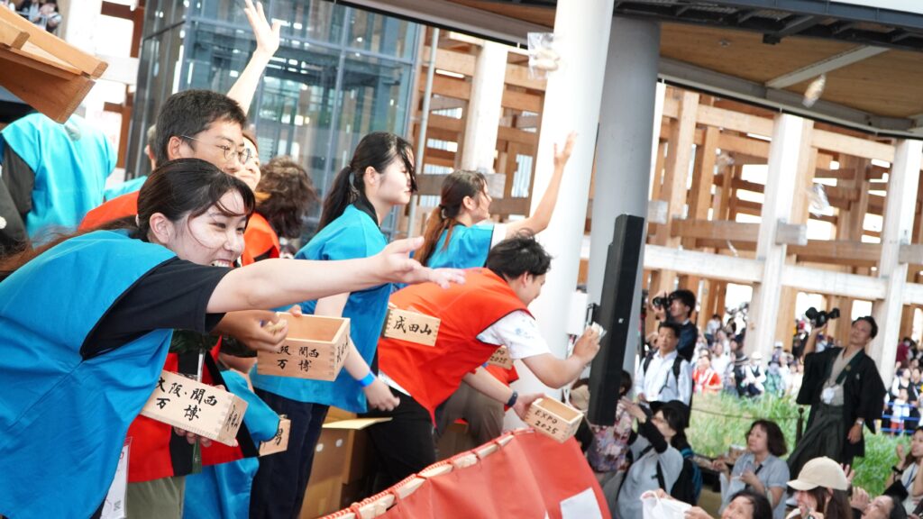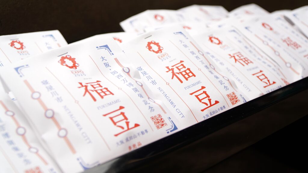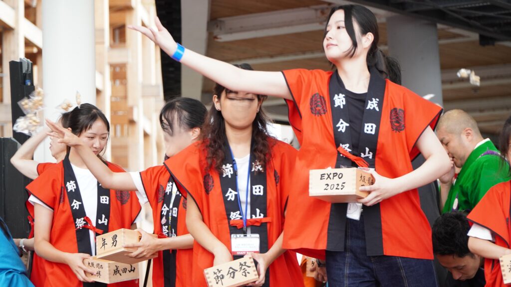 大阪・関西万博にて、寝屋川市が主催する成田山不動尊(成田山大阪別院明王院)の「豆まき」に、ボランティアバンクの学生が廣瀬市長と共に「大阪・関西万博から 世界のいのちへ 福は内」を実施し、世界各国の方々に向け、その魅力を披露しました。