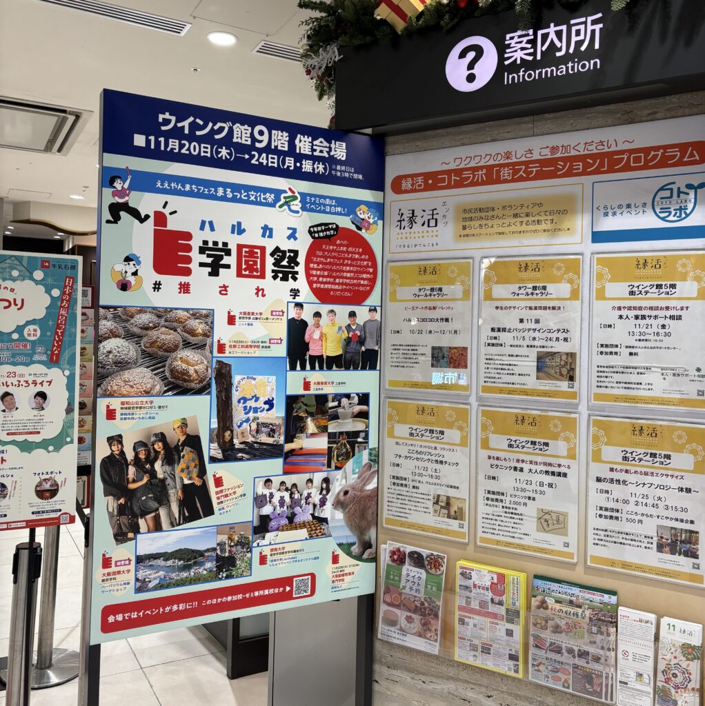 経営経済学部 経営学科 ベンチャービジネスコース佐々木ゼミ(2年生)は、ゼミ活動の一環として、2025年11月20日~24日に開催された あべのハルカス近鉄本店「ハルカス学園祭」 に出店しました。同イベントは今年で5回目を迎え、大阪府内を中心に24校が参加する、学生の学びを社会へ発信する場となっています。