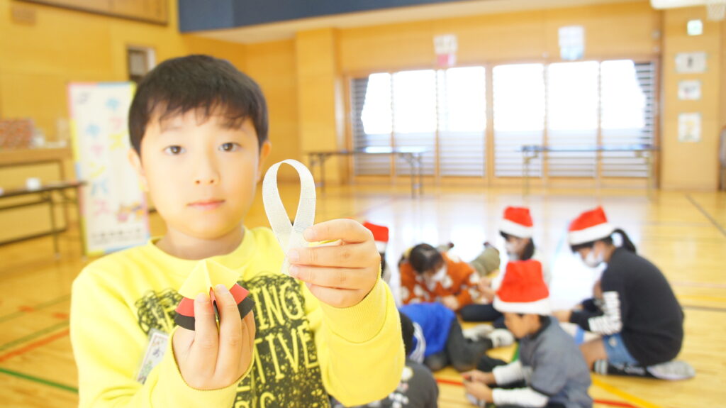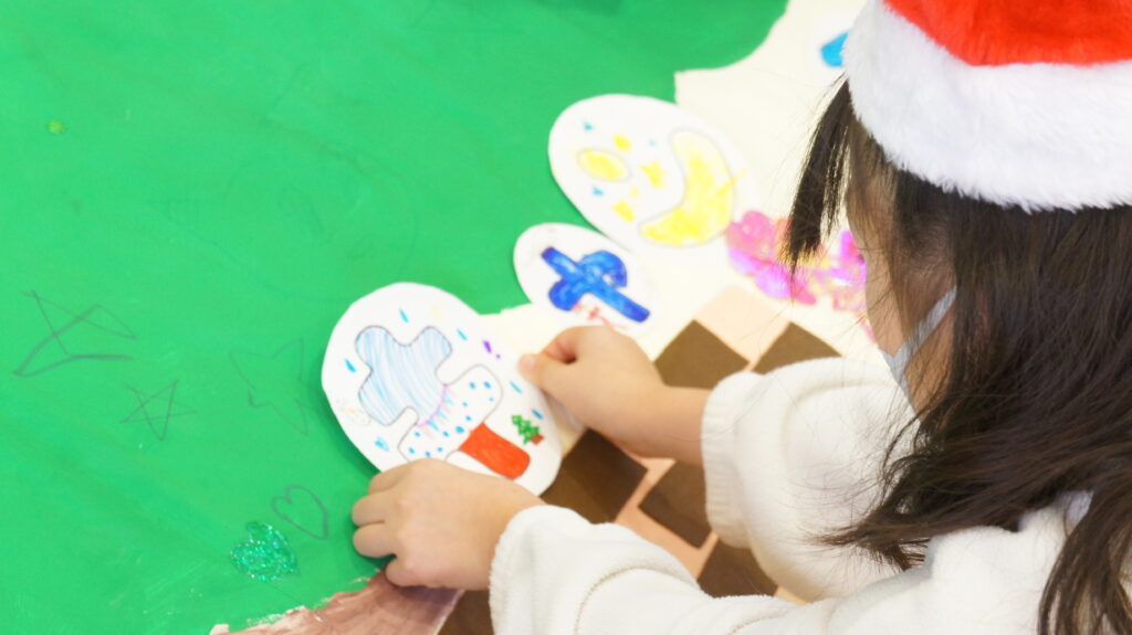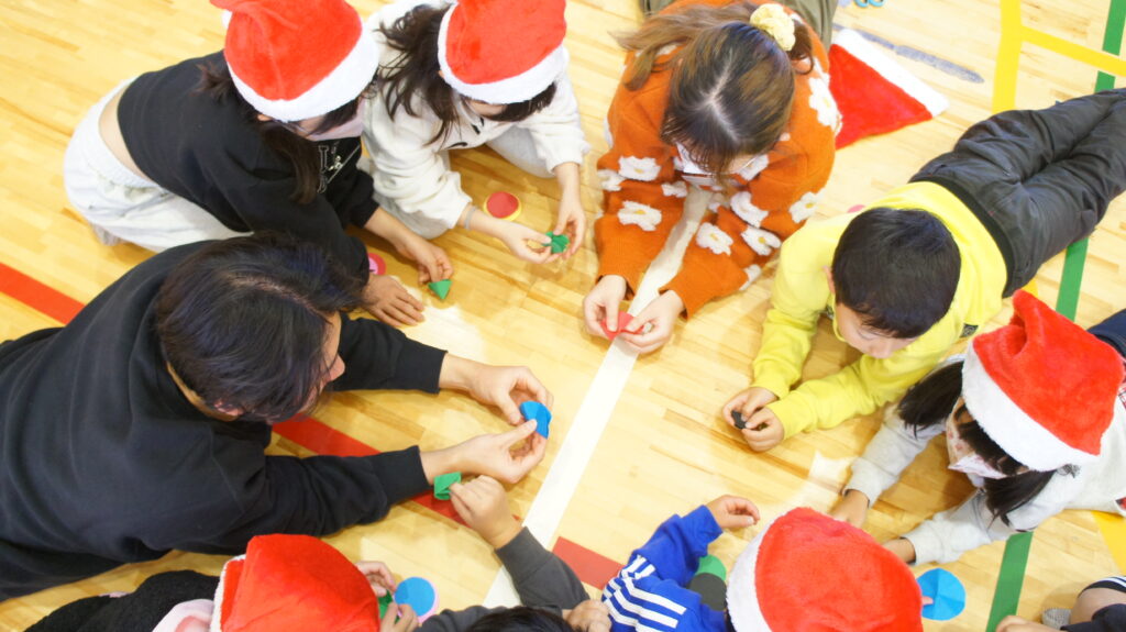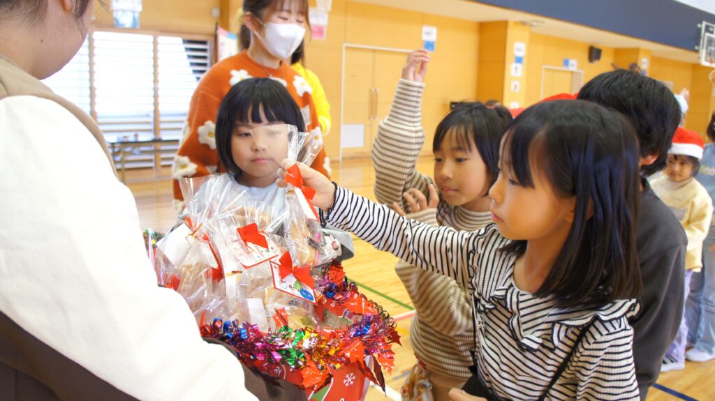 テーマ:クリスマスリースづくり(個人用、全体用)、じゃんけん列車、学内のカフェで作成したクリスマスクッキーのプレゼント