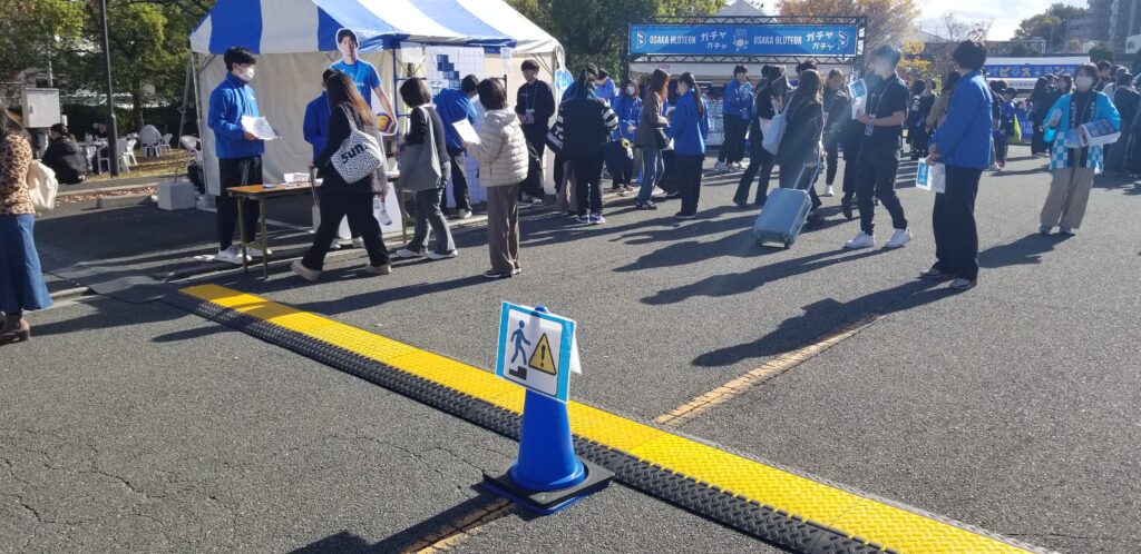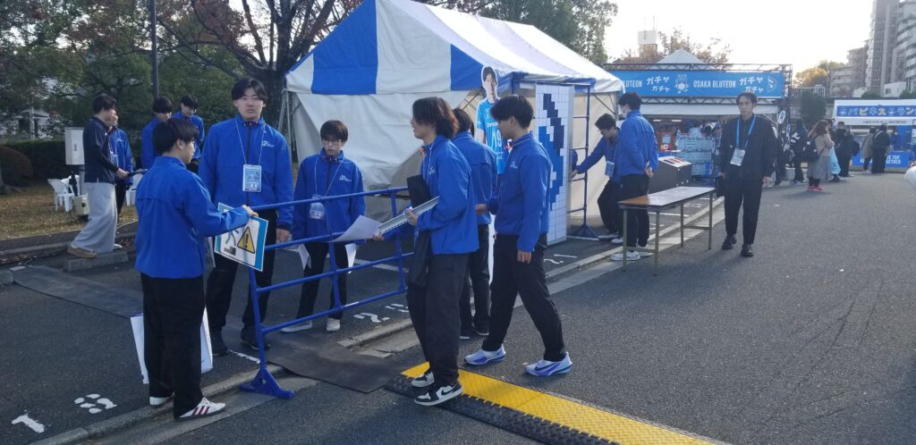 経営学科2年スポーツビジネスコースでは、SVリーグ所属クラブ「大阪ブルテオン」と連携し、「大阪ブルテオン経営プログラム」に取り組んでいます。2025年11月29日に、パナソニックアリーナにて開催されたホームゲームでは、会場内外の「ピクトグラムによる案内表示の設置」と、ファンとの関係性強化を目的とした「応援メッセージボード」の2企画を実施しました。これらの取り組みは、学生が現地調査や関係者へのヒアリングを通じて課題を把握し、立案から実施までを主体的に行った実践型プロジェクトです。