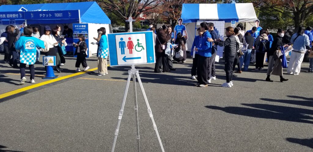 ピクトグラムによる案内表示の設置企画では、来場者の動線や案内に着目し、視覚的に分かりやすいサインを設置することで、来場者の利便性向上やスタッフ負担の軽減を図りました。応援メッセージボード企画では、試合会場および大学構内で応援メッセージを募り、ファンの想いを「見える形」で共有する取り組みを行いました。両企画においては、同時にアンケート調査を実施し、来場者の行動や参加動機、満足度を把握することで、ホスピタリティ向上やファン定着に向けた具体的な改善の視点を整理することができました。これらの取り組みはいずれも来場者や関係者から好評を得ました。