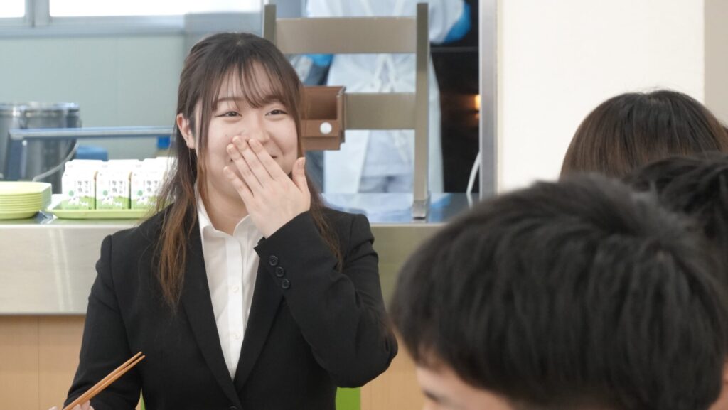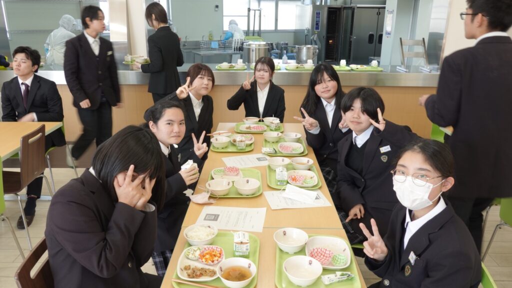 自らが考案したレシピが教育委員会に採用され、中学生と共に喫食して感想を聞くことは、貴重な経験となりました。