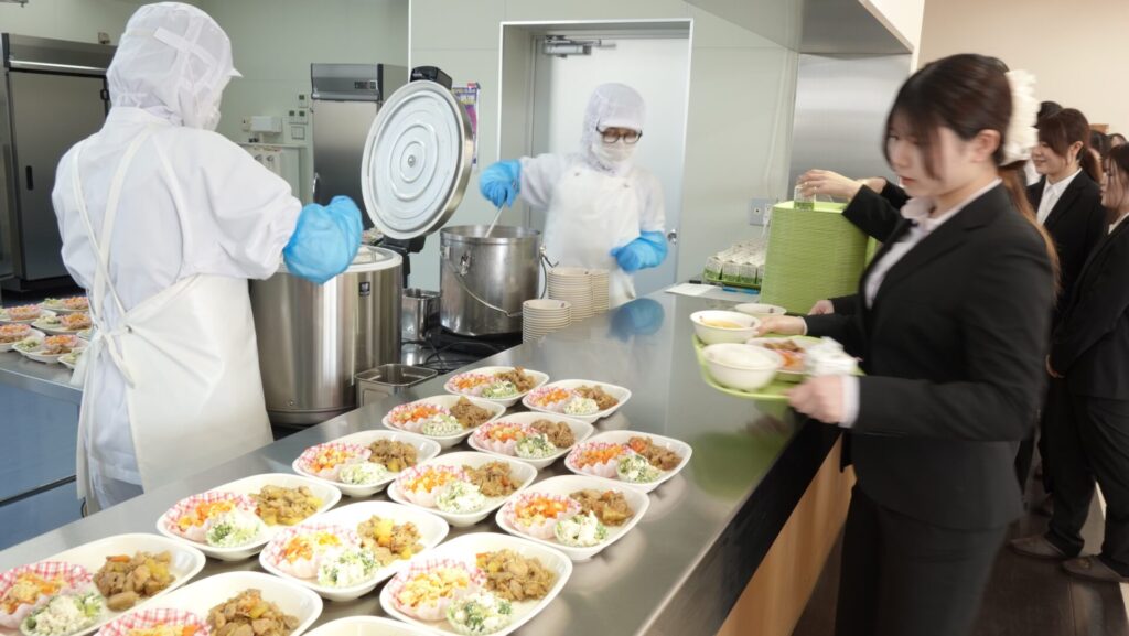 栄養学科の2年次生(2クラスのゼミ)が、守口市教育委員会や給食業者(株式会社万福)とコラボレーションして中学校給食のレシピ開発に挑戦し、同教育委員会に4食のオリジナルレシピが採用されました。