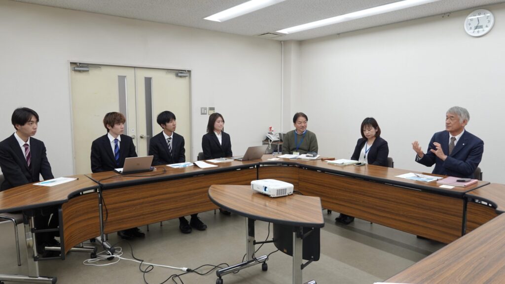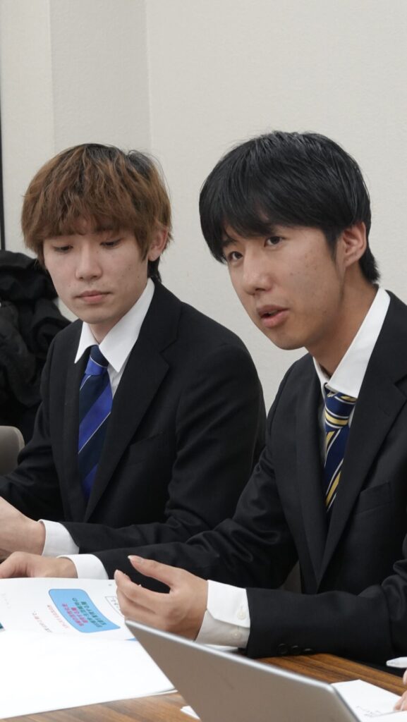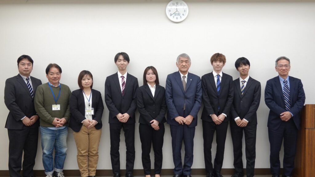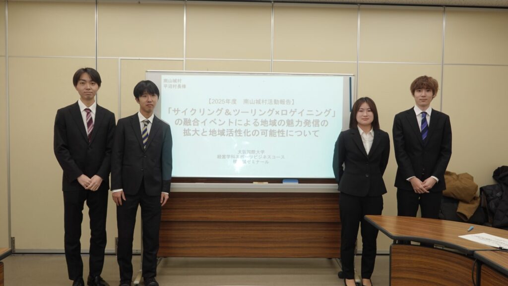 経営学科のスポーツビジネスコース学生が、南山城村の村長 平沼様と産業観光課の皆様、そして、地域おこし協力隊へ京都府の補助金事業にて活動してきた成果をご報告しました(2/17)。