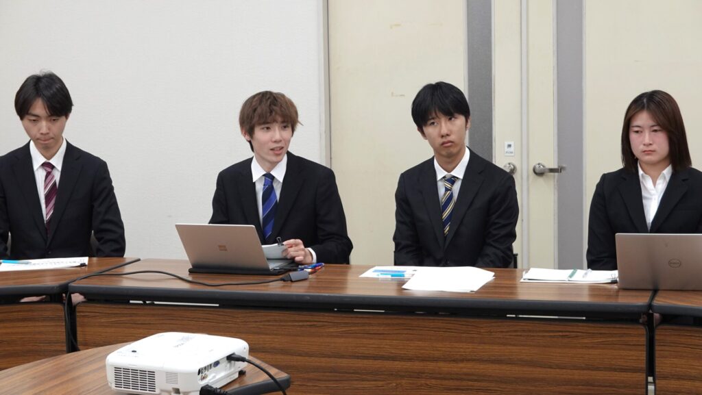今年度の報告会は、例年の平沼村長と産業観光課職員以外に地域おこし協力隊の方もご出席いただき学生の報告を聞いていただきました。学生たちは緊張した様子を見せながらも、自分たちの活動内容やその成果について堂々と発表し意見交換ができていました。