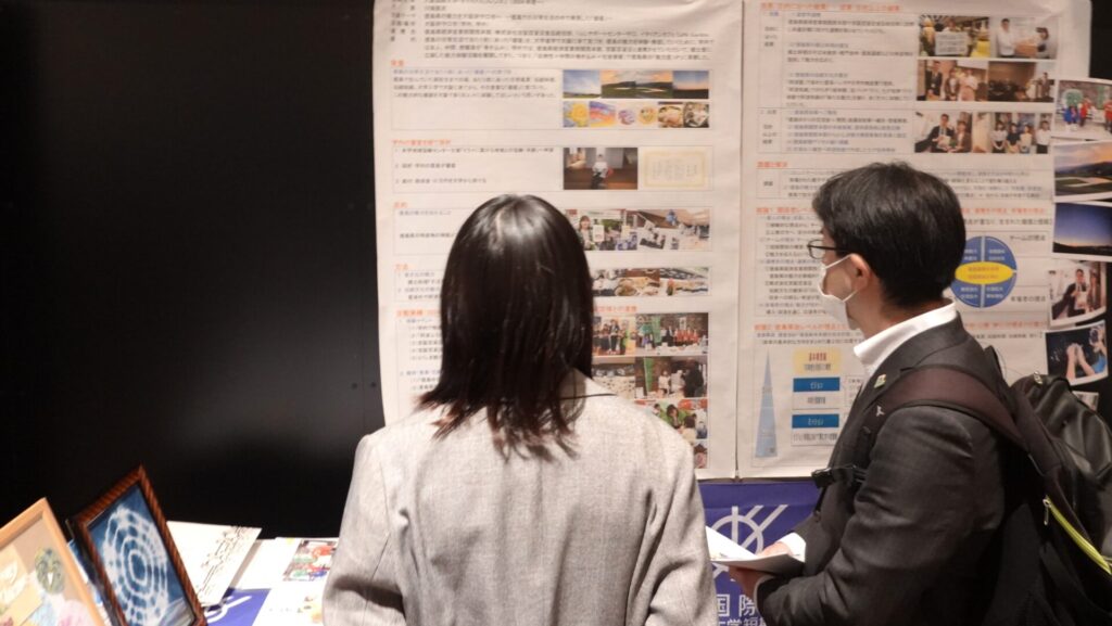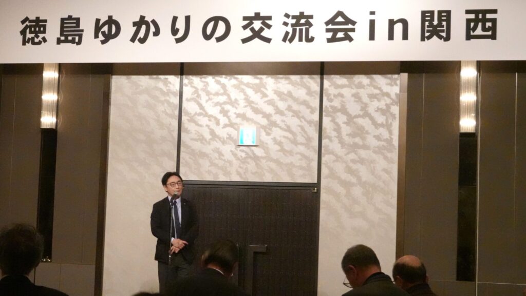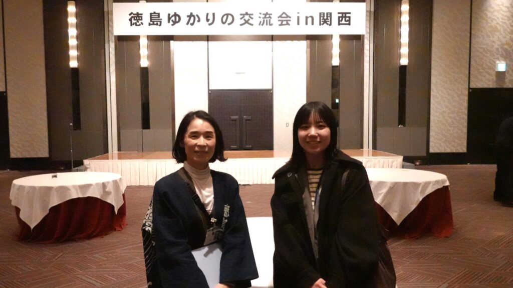 すだちくんフレンズ代表が昨年度に続き、徳島県の後藤田知事様から「徳島ゆかりの交流会in関西」にご招待いただき、登壇発表と後藤田徳島県知事に活動のご報告(ポスター発表)を行いました。日頃、徳島県経済産業部関西本部の本部長北川様をはじめ皆様に連携活動でお世話になっている関係で、ご招待いただきました。今後も「鳴門の渦潮」のように大学生を「巻き込み」、求心力を高め、「関係人口」、「移住交流」の向上に繋がるよう活動発展と魅力発信をしていきます。