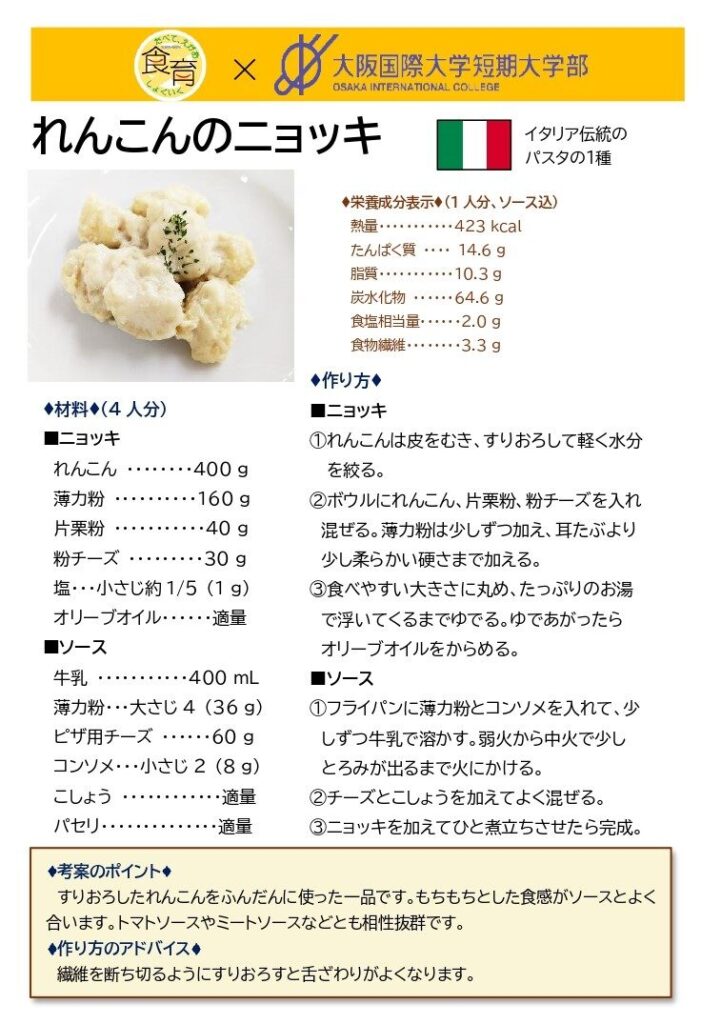 栄養学科の学生が考案した伝統野菜「門真れんこん」メニューを学内イタリアンカフェにてランチタイムに提供 | 大阪国際大学 大阪国際大学短期大学部
