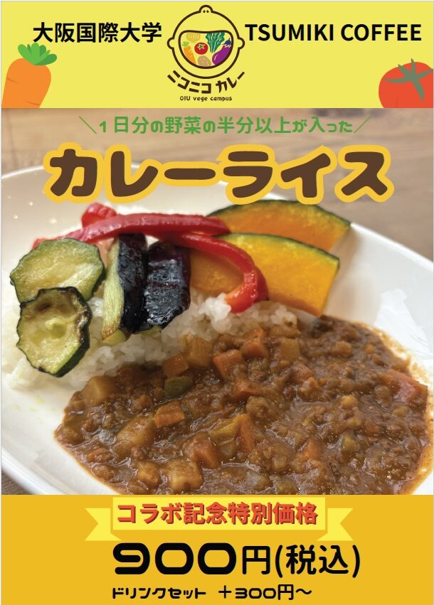 人間健康科学科のヘルスケアビジネス演習(喜多野宣子教授担当カレー班)で考案した「ニコニコカレー」が、門真市にあるルミエールホール内のカフェ『TSUMIKI COFFEE』のメニューに採用されました。