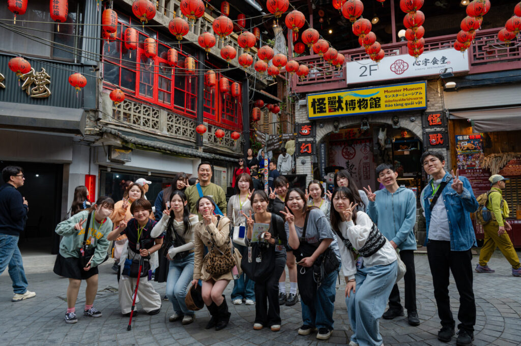 本プログラムは単なる観光旅行ではなく、異文化理解と国際的コミュニケーション能力の育成、そして学生主体の探究学習を目的としています。そのために、現地の大学生(大学院生)と街歩きと、九份や十份での観光資源調査を通じた台湾社会の基礎理解を研修に取り入れました。学生たちは、事前に自身で設定したテーマを意識しながら、現地学生との実践的な対話を通して、教室内の学習では得られにくい生きたコミュニケーションを経験しました。