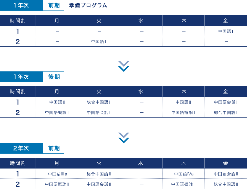 多くの人が初めて学ぶ中国語なので、1年次前期は初学者でも安心して学べる準備段階として、週2コマの授業を通して正確な発音をマスターします。同時に、基本的な単語や簡単な日常会話も学ぶことで、中国語との相性を再確認します。