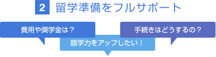 長期交換留学はもちろん短期プログラムにも奨学金制度を用意しています。留学先によって準備すべき内容が異なりますが、各種手続きもしっかりバックアップします。