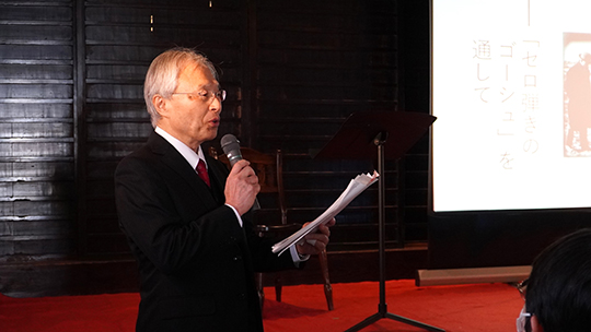 第2部では宮沢賢治研究家として知られる大阪国際大学名誉教授の松田司郎先生により、『宮沢賢治と音楽「セロ弾きのゴーシュ」を通して』と題した講演が行われ、さらに深くセロ弾きのゴーシュの意味について学ぶことができた一日となりました。また、吹奏楽部の学生も準備やお客様の対応に大活躍しました。