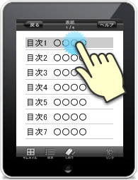 表示されているブックの目次が表示されタップするとそのページにジャンプできます。