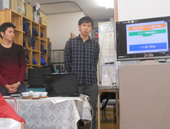 1月20日(木)「スクールバスプロジェクト」の学生たちが、大学地元の菅原東校区から要望が高い「スクールバスのコミュニティバスへの展開」の進捗状況について、地域に出向きプレゼンテーションを行った。