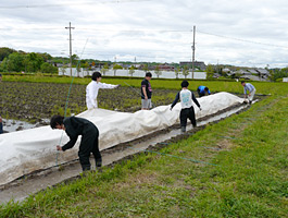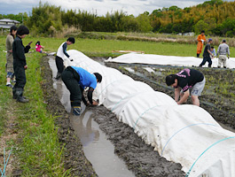 | ビニールを被せる準備も同時進行 | 慣れてくれば流れ作業です |