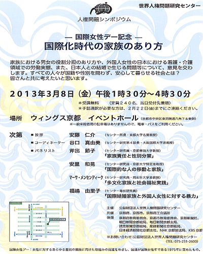 現代社会学部 法律政策学科 谷口真由美准教授が、「人権問題シンポジウム― 国際女性デー記念 ― 国際化時代の家族のあり方」にコーディネーターとして出演します。