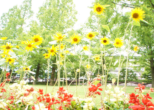 岩手県大槌町から持ち帰ったヒマワリの種が学内で開花