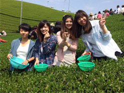茶摘みでニッポンの魅力を発見する留学生ら