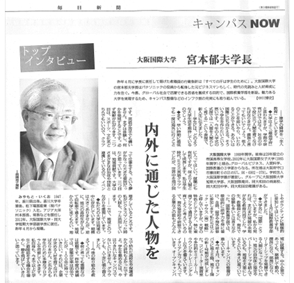 9/23(水・祝)の毎日新聞朝刊13面「キャンパスNOW」に宮本学長のインタビューが掲載されましたので、ぜひ、ご覧ください。