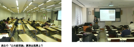グローバルビジネス学部開講科目「公共経営論」では、下記の日程にて、外部講師(ゲストスピーカー)を招聘しております。このリレー講座は、第一線の実務家をお招きし、当該公共経営・まちづくり分野における最新の動向・仕組みや地域課題などについて、貴重なお話(生の声)を伺うことで、受講生自身のキャリア・プランニングやガバナンス能力の向上に資することをねらいとしています。