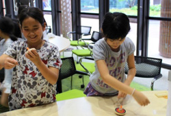 コマ回しに挑戦!みんな上手でした