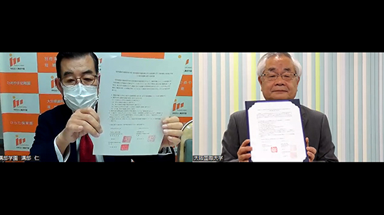 別府溝部学園高等学校および別府溝部学園短期大学(大分県)と連携協定の調印式を実施